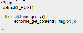 php의 extract 취약점을 사용하면 위의 emergency의 변수를 선언 및 변조할 수 있다.