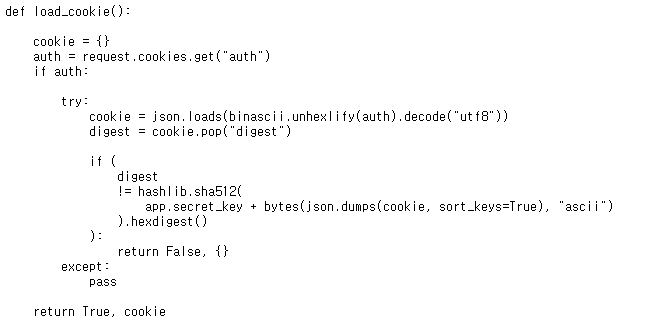 단 load_cookie()를 잘 보면 unhexify 함수를 쓰니 적절하게 변조를 하면 될 것 같다.