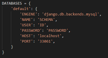 다음으로는 마찬가지로 settings.py의 databases를 수정한다.