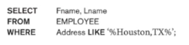 - WHERE문 내에 LIKE로 패턴 을 검색 할 수 있다. '%'는 *과 비슷하다 '_'는 한글자 만을 뜻한다.