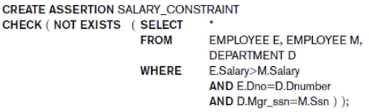 - 관계 모델의 기본적인 제약조건 들을 제외한 추가적인 제약조건들을 명시할 때 사용.