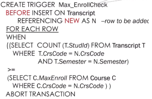 - only one trigger per event type (BEFORE INSERT OR UPDATE 이런걸 못함)