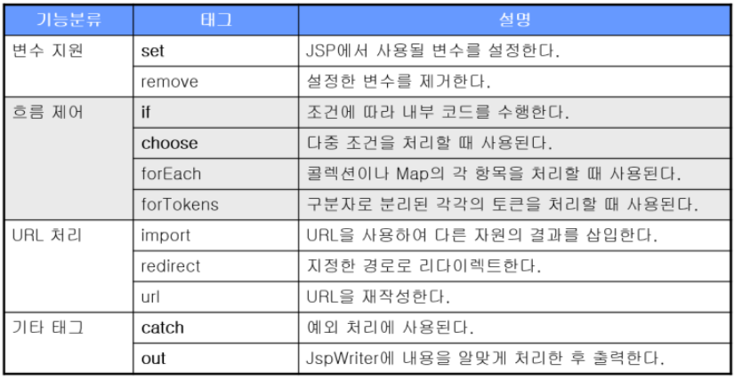 JSTL은 JSP 페이지에서 조건문 처리, 반복문 처리 등을 html tag 형태로 작성할 수 있게 도와줌