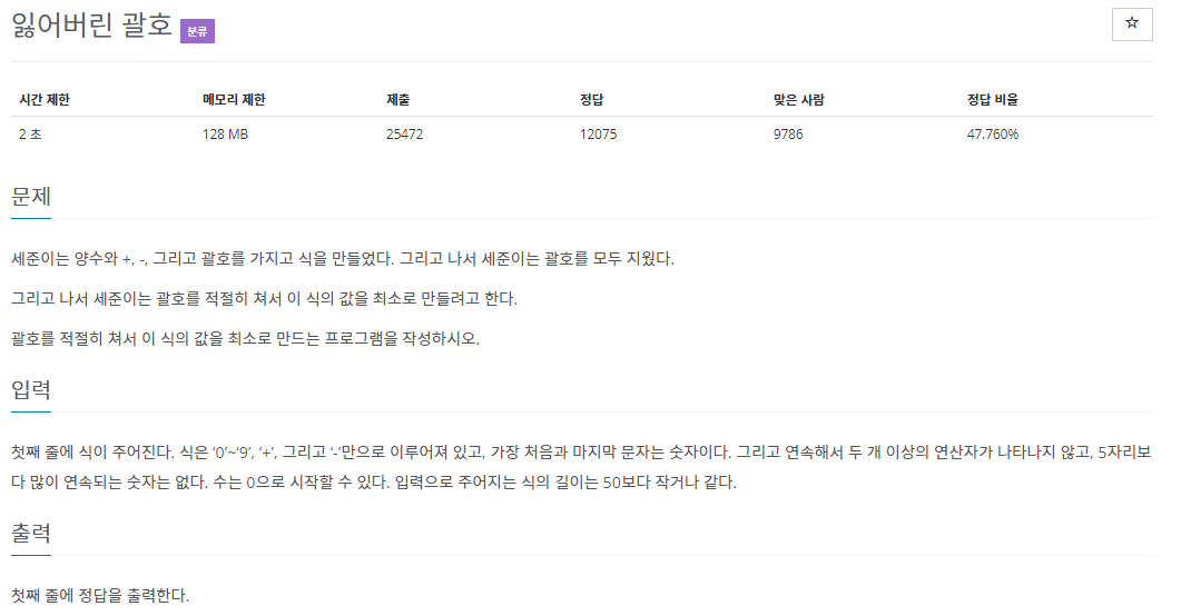 식에 괄호를 쳐서 최솟값을 만드는 문제이다.
