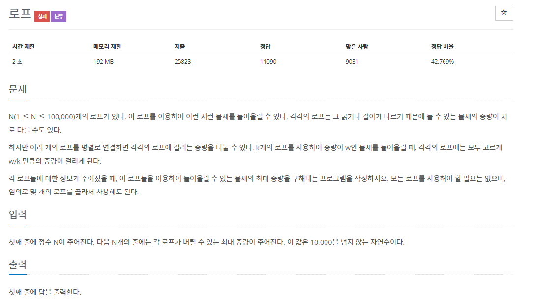 이 문제는 우선 로프들이 들어올릴 수 있는 무게 데이터를 리스트로 받아