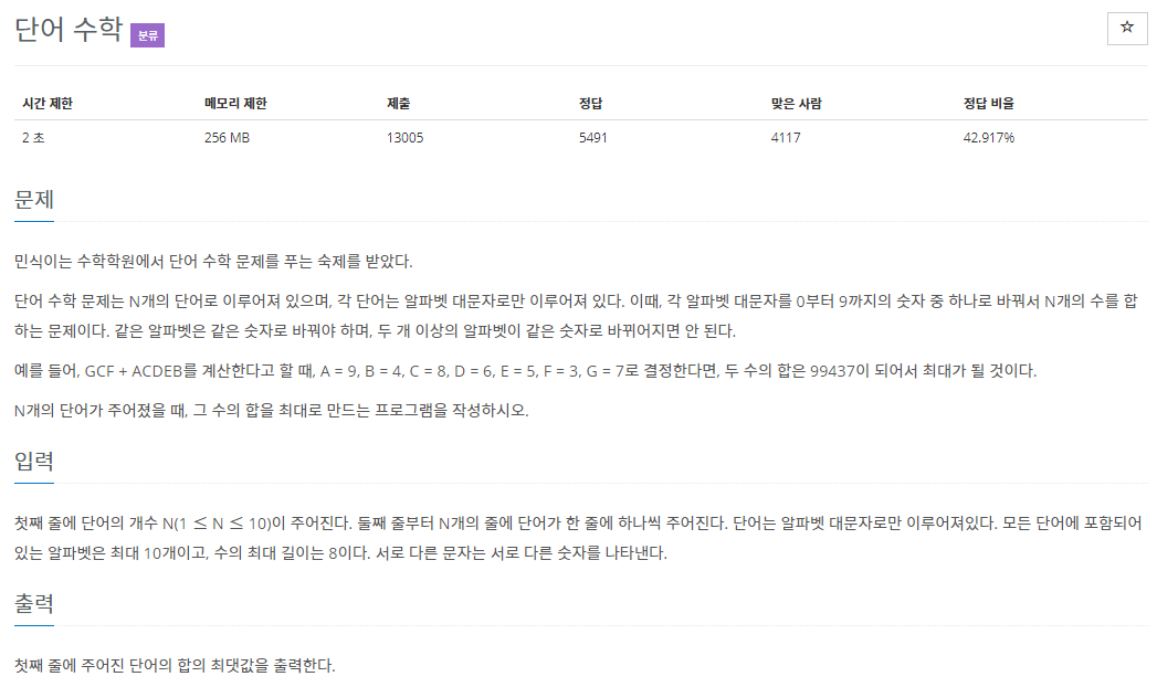 [백준 1339 단어 수학 문제] PYTHON 본문