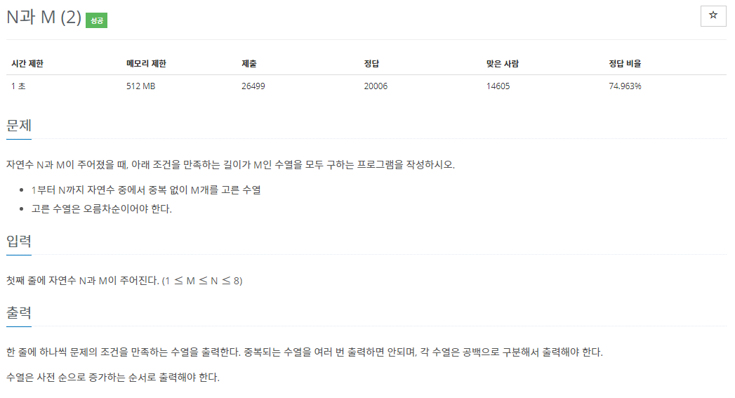 지난 N과 M 문제와 거의 동일한 문제였지만 백트래킹 문제라는 것을 뒤늦게 알게되어 시도해봤다.
