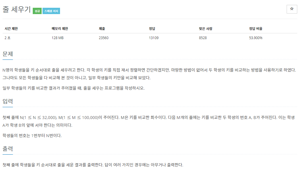 [백준 2252 줄 세우기 문제] PYTHON 본문