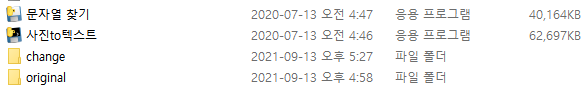 1. 사진To텍스트.exe를 실행하면 original 폴더에 있는 사진들이 change 폴더 속 txt 파일로 변환